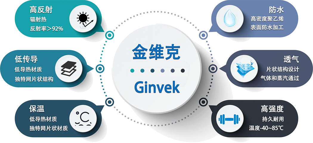 在外部環(huán)境,尤其是夏季高溫環(huán)境中,太陽(yáng)輻射熱才是建筑物及其內(nèi)部溫度升高的主要來(lái)源。利用金維克材料對(duì)農(nóng)場(chǎng)建筑進(jìn)行防護(hù)(屋頂,側(cè)墻等),能夠極大降低太陽(yáng)輻射熱帶來(lái)的溫度影響,切斷升溫主要來(lái)源,從而減緩室內(nèi)溫度的上升,為生物提供事宜的環(huán)境溫度,同時(shí),利用金維克材料的紫外反射特性及一定的阻水能力,還可以改善老舊建筑容易吸熱,吸水等缺陷,進(jìn)一步給養(yǎng)殖環(huán)境提供可靠的“防護(hù)屏障”。